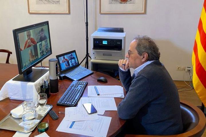 El último ejemplo lo ha dado el presidente de la Generalitat de Cataluña, Quim Torra, que está subiendo imágenes de sus reuniones telemáticas. Y esas instantáneas están generando mucho cachondeo por un detalle: una especie de mantelito blanco que tiene colocado debajo de la pantalla del ordenador.