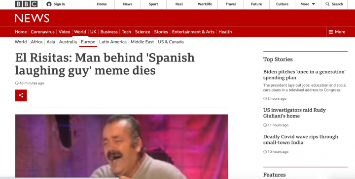 Indy100, la web sobre virales del británico The Independent, recoge también su muerte y le añade más sentimiento: “Borja estuvo allí para ayudarte a reírte de cualquier situación difícil que encontraras. Ayudó a capturar ese hermoso momento en el que estás contando una historia mágica y es demasiado divertido como para poder terminar”.