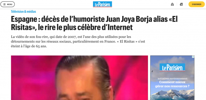 En Le Parisien describe su risa como “peculiar pero muy contagiosa, que ha aparecido en internet en decenas de miles de vídeos en todo el mundo”.