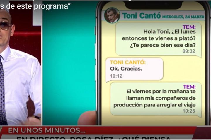 Además, Risto ha lamentado que este mismo miércoles por la mañana, antes de hacerse oficial su ‘salto’ al PP, se volvieron a cruzar mensajes con Cantó para preguntarle que si le parecía bien comenzar el lunes en el programa, a lo que él respondió: “Ok, gracias”.