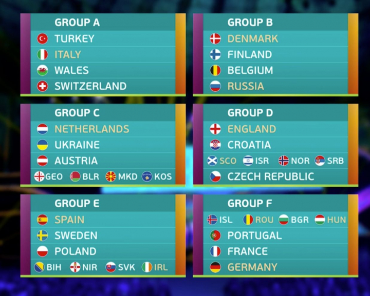 Así ha quedado la fase de grupos, donde el F es el llamado ‘de la muerte’, con Francia, Alemania y Portugal.