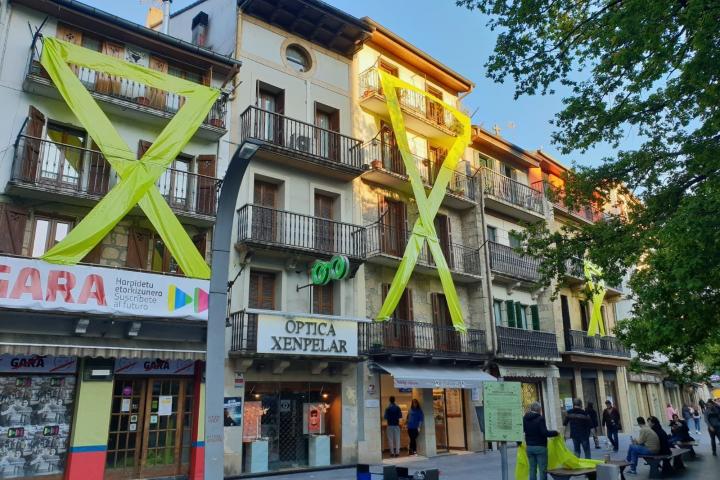 Con lazos amarillos XXXL en las fachadas, caceroladas, gritos e insultos. Así han recibido numerosos vecinos de Errenteria al líder de Ciudadanos y candidato a La Moncloa, Albert Rivera, que ha ofrecido un mitin este domingo en este municipio guipuzcoano, a cuya finalización ha habido algunos enfrentamientos entre antidisturbios de la Ertzaintza y vecinos que protestaban por la celebración del acto.