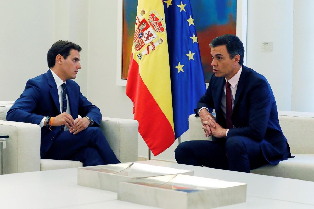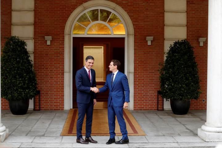 El líder de Ciudadanos, Albert Rivera, le ha comunicado al presidente del Gobierno, Pedro Sánchez, su intención de no facilitar la investidura y liderar así la oposición, a la vez que le ha ofrecido los senadores de su partido y los 57 escaños en el Congreso para que ponga en marcha el artículo 155 de la Constitución en Cataluña.