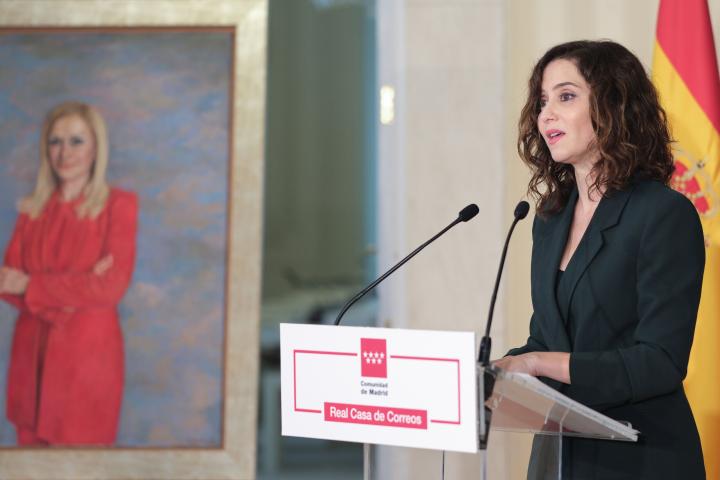 La dirigente madrileña, Isabel Díaz Ayuso, compareció junto a la exlíder regional para mostrar el nuevo cuadro que se colgará en la Asamblea de Madrid. Un retrato que costará algo más de 15.000 euros.