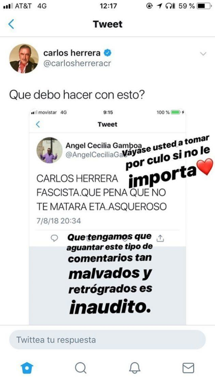 El tuit en cuestión fue compartido por el propio Herrera en su cuenta de Twitter, en la que se preguntó: "¿Qué debo hacer con esto?".