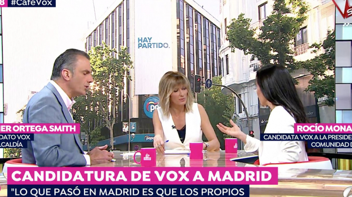 La candidata de Vox a presidir la Comunidad de Madrid, Rocío Monasterio, le ha desvelado a la periodista Susanna Griso —en el programa Espejo Público, en Antena 3— lo que de verdad se escondía tras su tenso encuentro con el candidato regional de MásMadrid, Íñigo Errejón, en los actos del Día de la Comunidad de Madrid.