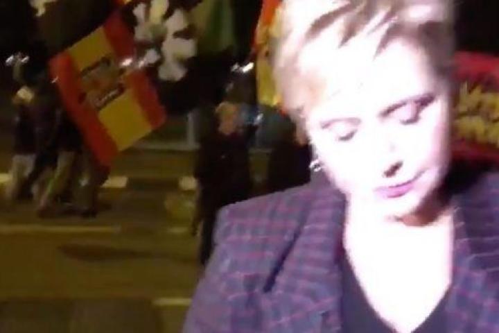 La periodista se encontraba grabando una entradilla al paso de una manifestación de una organización ultraderechista cuando varios de los manifestantes, con banderas de España en la mano, se acercaron para insultarla.