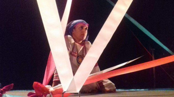 Idiomas al que su director añade su lenguaje escénico. Un lenguaje que se hace con cintas anchas que aportan luz y color. Cintas que poco a poco van construyendo y, de nuevo, enseñando, un idioma al espectador a medida que dibuja espacios y lugares sobre ese escenario en negro en el que sucede la acción. Desde la abstracción y el minimalismo inicial de una palabra, una nota de color, para acabar construyendo la complejidad de los bosques, los ríos y las cataratas. La complejidad en la que se desenvuelve la vida. Una complejidad sencilla, como idea escenográfica, pero fuerte y decididamente mexicana por los colores usados en las cintas.