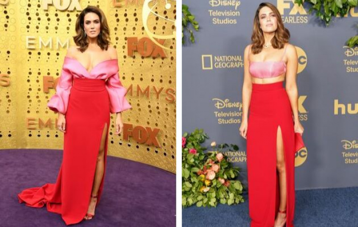 La actriz Mandy Moore, protagonista de This is Us, estaba tan cómoda con su elección que optó por vestir los mismos colores tanto en la propia gala como en las fiestas posteriores. Primero con mangas abullonadas y después con un crop-top, ambos del mismo rosa.