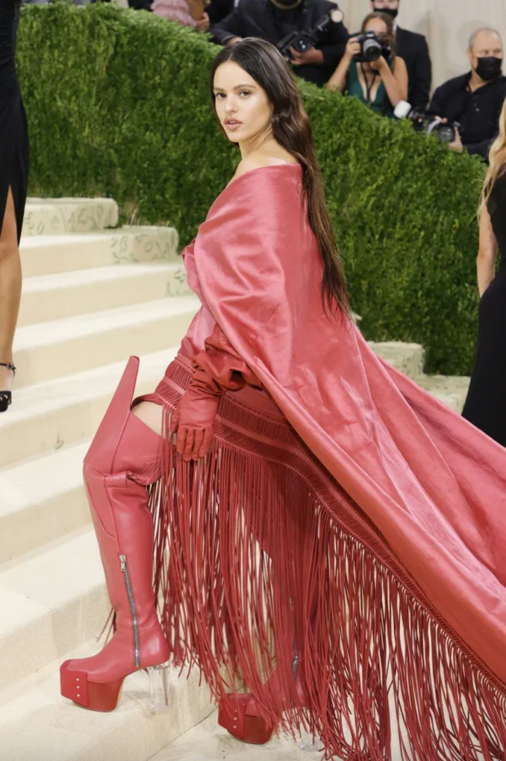 Esta es la segunda vez que Rosalía acude a la Gala Met, después de que debutara el año pasado en una edición especial celebrada en septiembre por la pandemia. Entonces, la cantante quiso homenajear a Lola Flores con un traje de Rick Owens inspirado en los clásicos mantones de Manila, que tanto lució La Faraona y populares entre los artistas flamencos.