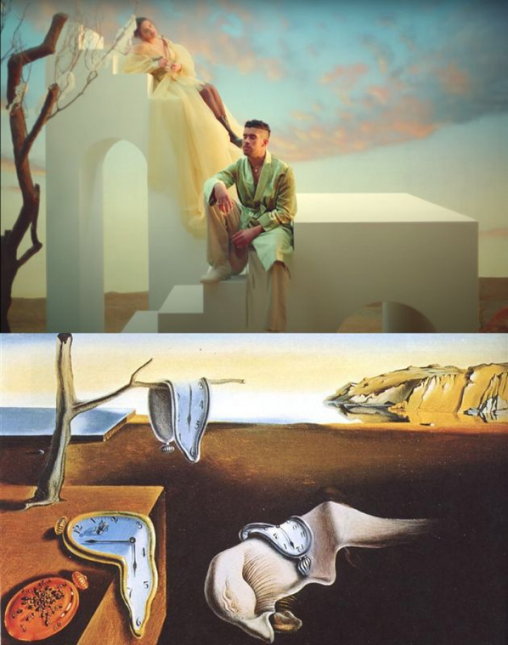 Una de las más repetidas de este tema del puertorriqueño y la catalana es el guiño al pintor español Salvador Dalí. Concretamente a su cuadro La persistencia de la memoria (1931), que se considera uno de los ejemplos más representativos del surrealismo.
