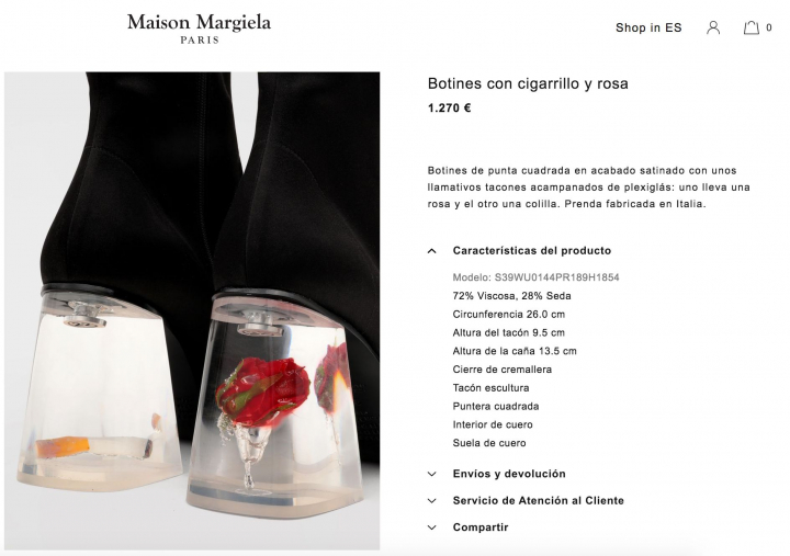 El modelo se vende por 1.270 en la web de Maison Margiela, aunque están agotados por el momento.