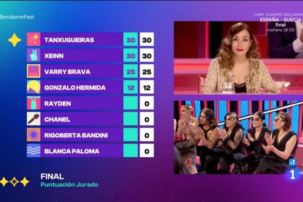 El grupo Tanxugueiras fue el que más puntos obtuvo tanto por el voto demoscópico como por la modalidad del televoto, siendo las favoritas de la noche, junto a Rigoberta Bandini, a pocos puntos del trío de gallegas.