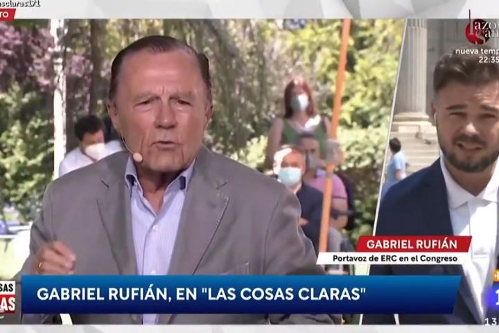 El diputado y portavoz de ERC Gabriel Rufián ha respondido en Las cosas claras de TVE a Ignacio Camuñas, uno de los exministros del Ejecutivo de Adolfo Suárez.
