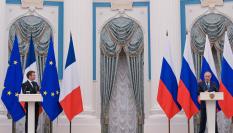 La resolución de la crisis en Ucrania se mantiene en los despachos. Aunque no siempre hay coincidencias entre las conclusiones de los participantes, como ha sucedido tras la reunión de Vladimir Putin y Emmanuel Macron en Moscú este lunes.