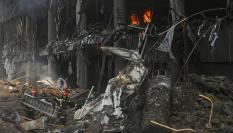 El bombardeo producido en la noche del domingo contra el edificio a las afueras de Kiev ha destrozado el centro comercial y ha causado daños severos a los edificios de viviendas y los automóviles situados en los alrededores.