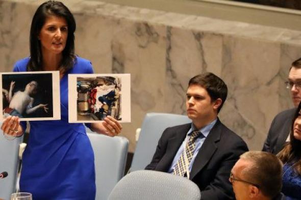 Haley insistió en que el ataque tiene el "sello distintivo" del régimen de Bachar al Asad y recordó que el Ejército sirio ya utilizó en el pasado sustancias químicas. En ese sentido, criticó el veto de Rusia y China el pasado enero a una resolución que buscaba sancionar a Siria por esos ataques químicos y consideró que, si no se actúa, este tipo de atrocidades continuarán.