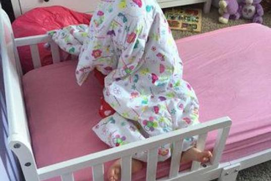 Puedes darles la mano para calmarlos en vez de tumbarte en la cama con ellos e ir apartándote poco a poco.