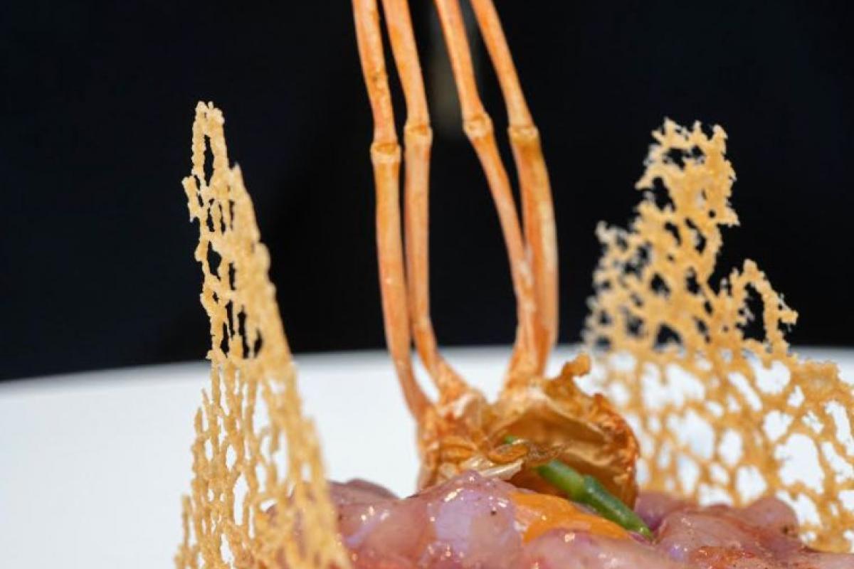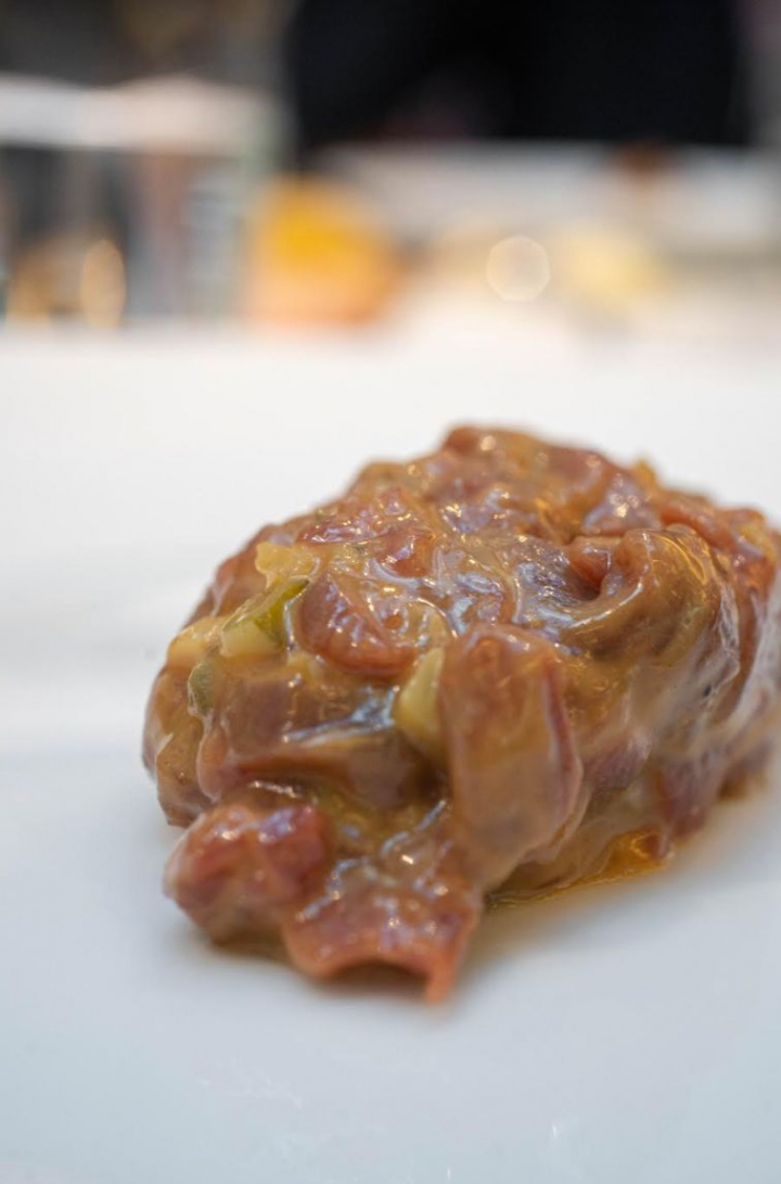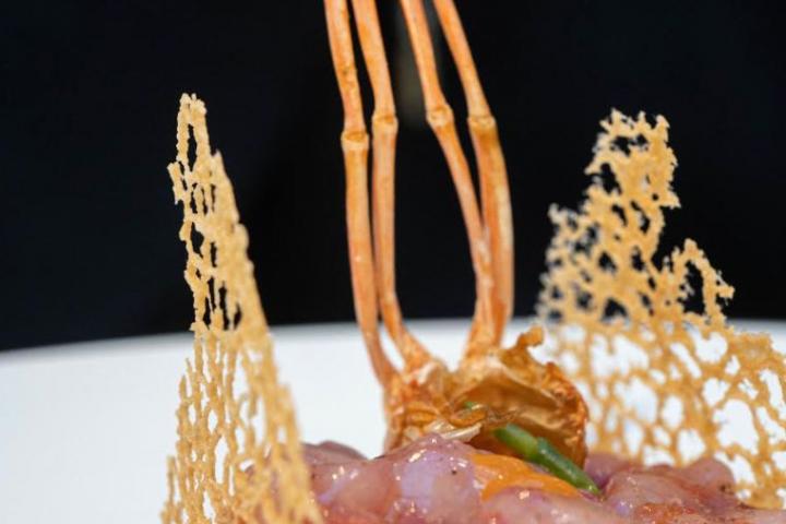 El menú sigue con un tartar de gamba de garrucha, plato emblema de la casa, por su excelso producto como por su plasticidad visual. Un tartar que no esta casi aderezado, como deben ser estas elaboraciones cuando de marisco se trata.