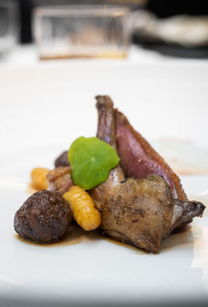 Termino la parte salada con el pichón Mont Royale, acompañado de gnocchi de patata y albóndiga de sus interiores. Un final colosal para una comida de un alto nivel.