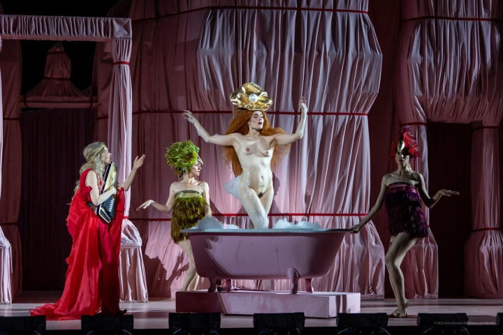Una poeta a la que la contemporaneidad actual, con sus recursos, sus formas de hacer y ver, permite contar y cantar. A la que se puede mostrar, como en este montaje, con toda la sensualidad corporal femenina al servicio del amor espiritual y del deseo carnal. Ya sean vestidas por el figurinista Pier Paolo Álvaro, o desnudas.