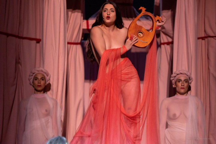 Si se deja a un lado la polémica y la idea o a priori que se tenga del teatro y se mira lo que se ofrece, ¿qué es lo que se encuentra? Un biopic más bien literario, en el sentido de que se da más importancia a los poemas de Safo, que se cantan, que a los hechos históricos.