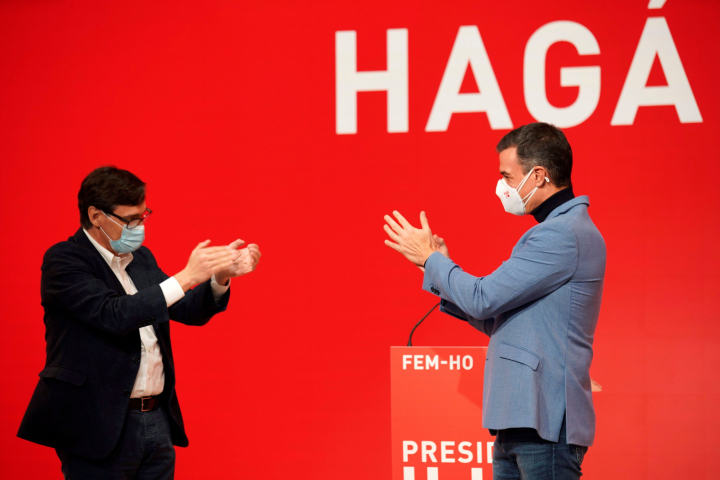 Es una campaña extraña, con mascarillas, con geles hidroalcohólicos, con mítines de salón, pero el PSC lo va a dar todo. Y no sólo los socialista catalanes, todo el PSOE, empezando por el propio presidente del Gobierno, Pedro Sánchez, que ya acompañó a Illa en el arranque del jueves y que va a estar en total hasta en cinco ocasiones en actos en Cataluña.