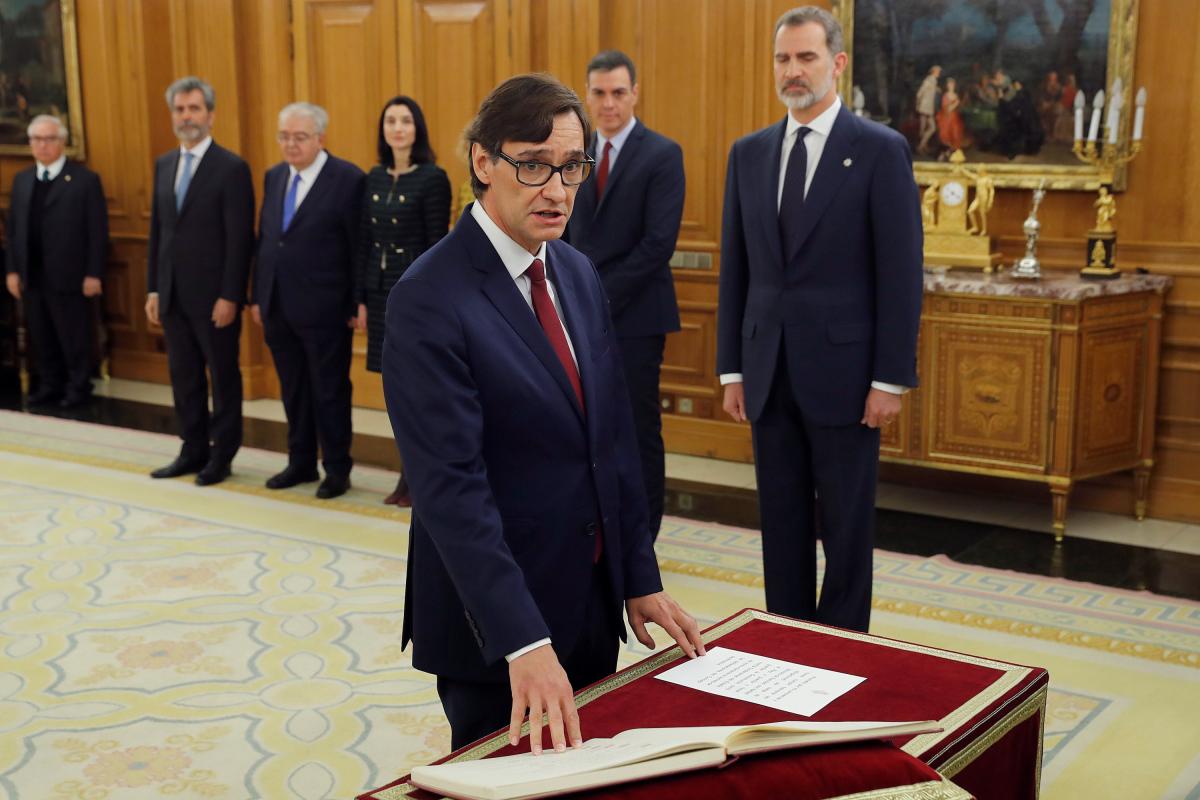 El nuevo ministro de Sanidad, Salvador Illa jura su cargo durante un acto celebrado en el Palacio de Zarzuela en Madrid este lunes 13 de enero de 2020.