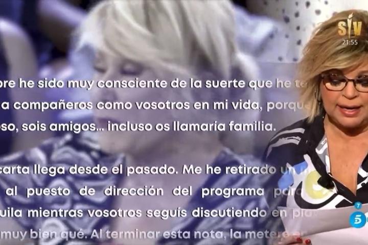 Terelu Campos leyó este jueves una carta ficticia de la colaboradora que "ha provocado dolor" a Alba Santana.