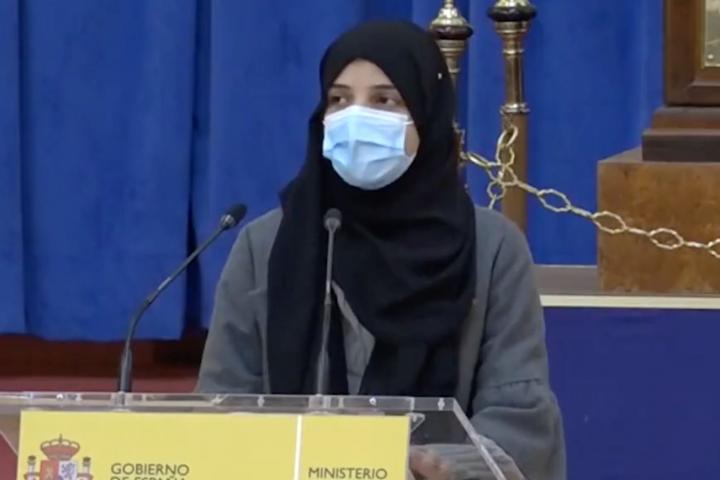 Samia, la joven refugiada afgana que ha emocionado a Pedro Sánchez con su discurso