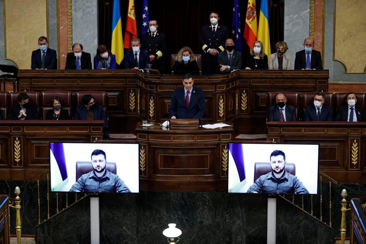 Sánchez ha expresado ese apoyo en el acto del Congreso en el que Zelenski ha intervenido por videoconferencia ante gran parte del Gobierno y de los diputados y senadores españoles.