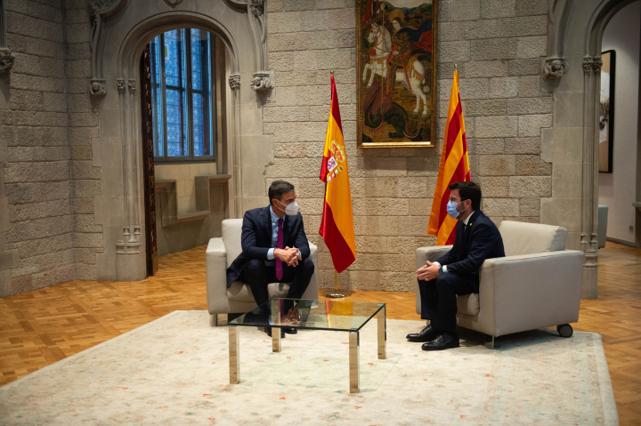 Sánchez y Aragonès constatan posiciones "muy lejanas" pero seguirán trabajando en la Mesa sin plazos
