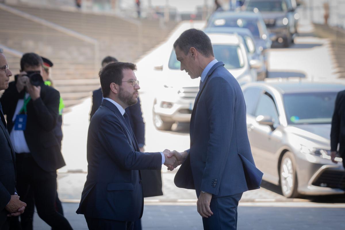 Hay que resolver la situación. Este era el mensaje que le trasladaba Pedro Sánchez a Pere Aragonès en su breve conversación mientras esperaban a la presidenta de la Comisión Europea, Ursula Von der Leyen, antes de participar este viernes en un acto del Cercle D’Economia. La situación es muy grave, le reprochaba el catalán al presidente.