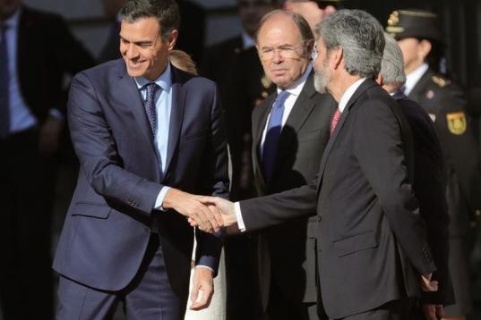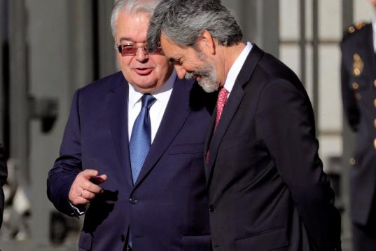 GRAF2526. MADRID, 06/12/2018.- Los presidentes del Tribunal Constitucional, Juan José González Rivas (i) y del Supremo, Carlos Lesmes, conversan a su llegada al Congreso para el acto solemne conmemorativo del 40 aniversario de la Constitución...