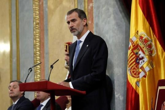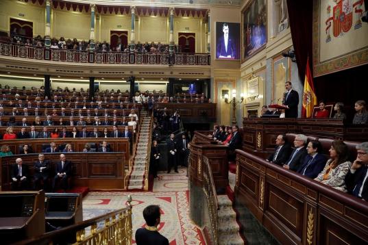 GRAF2615. MADRID, 06/12/2018.- El Rey Felipe VI, en el hemiciclo del Congreso de los Diputados, en el que se celebra esta mañana la solemne conmemoración del 40 aniversario de la Constitución.- EFE/Zipi