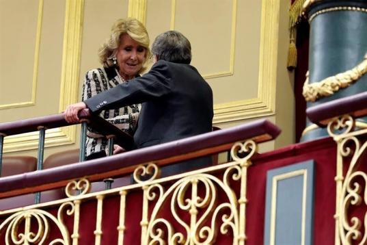 La expresidenta de la Comunidad de Madrid, Esperanza Aguirre, en la tribuna del Congreso de los Diputados, en el que se celebra esta mañana la solemne conmemoración del 40 aniversario de la Constitución, un 6 de diciembre en que coinciden, de...