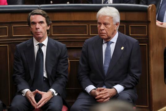 GRAF2626. MADRID, 06/12/2018.- Los expresidentes del Gobierno José María Aznar (i) y Felipe González, durante el acto de conmemoración del cuarenta aniversario de la Constitución que preside el rey Felipe VI en el Congreso. EFE/ Zipi