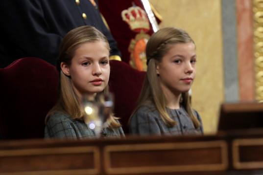 GRAF2628. MADRID, 06/12/2018.- La Princesa Leonor (i) y la Infanta Sofía, en el hemiciclo del Congreso de los Diputados, en el que se celebra esta mañana la solemne conmemoración del 40 aniversario de la Constitución.- EFE/Zipi