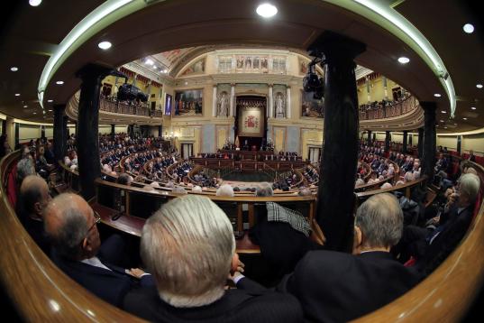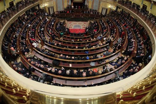 GRAF2621. MADRID, 06/12/2018.- Vista general del hemiciclo del Congreso de los Diputados, durante el discurso del Rey Felipe VI, hoy en la solemne conmemoración del 40 aniversario de la Constitución. EFE/Zipi