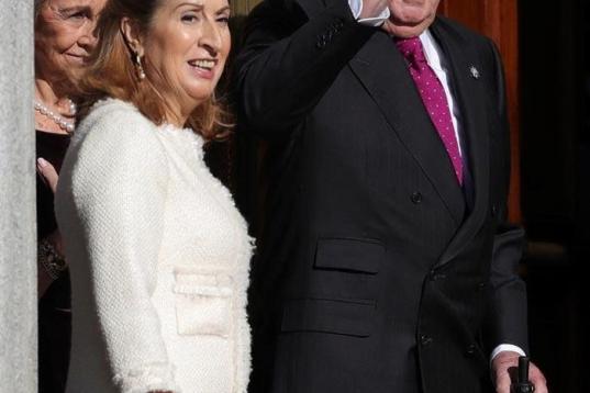 El Rey emérito Juan Carlos I y la presidenta del congreso Ana Pastor, en el exterior del Congreso de los Diputados, en el que se celebra esta mañana la solemne conmemoración del 40 aniversario de la Constitución, un 6 de diciembre en que coi...