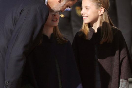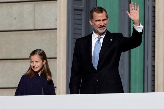 El Rey Felipe VI, junto a la princesa Leonor, en el exterior del Congreso de los Diputados, en el que se celebra esta mañana la solemne conmemoración del 40 aniversario de la Constitución, un 6 de diciembre en que coinciden, de forma excepcio...