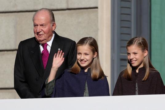 GRAF2565. MADRID, 06/12/2018.- La Princesa Leonor y la infanta Sofía y el rey emérito Juan Carlos, a su llegada al acto solemne conmemorativo del 40 aniversario de la Constitución, que se celebra hoy en el Congreso. EFE/ Juanjo Martín