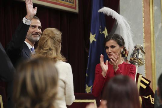 GRAF2654. MADRID, 06/12/2018.- El rey Felipe VI, aplaudido por Doña Letizia, tras su discurso en el acto de conmemoración del cuarenta aniversario de la Constitución ante los diputados y senadores reunidos en una sesión solemne del Congreso ...