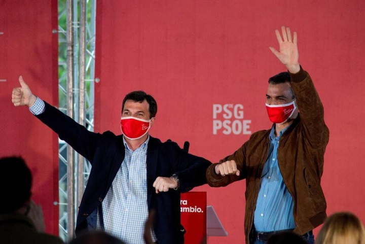 No muy lejos de allí, en Ourense, Pedro Sánchez, apoyaba al candidato socialista, Gonzalo Caballero.