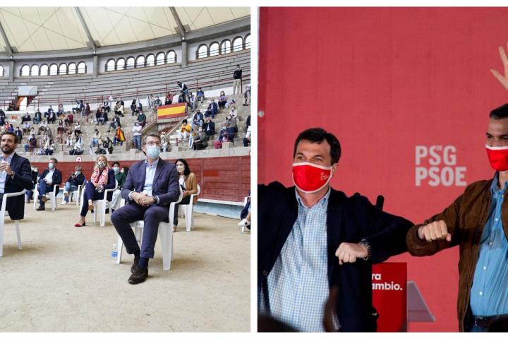 El presidente del Gobierno y el líder del PP se cruzan reproches en mítines marcados por la nueva normalidad.