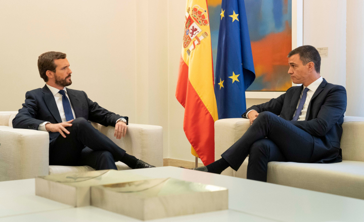 Reunión en La Moncloa entre Pedro Sánchez y Pablo Casado. El presidente en funciones le ha trasladado al líder del PP “un mensaje claro”: “no descarta ningún escenario, todo está previsto y actuará, si es preciso, desde la firmeza, la proporcionalidad y la unidad”, en tanto que el conservador ha pedido enviar un requerimiento a Quim Torra -paso previo al 155-, aplicar la Ley de Seguridad Nacional y que la Fiscalía actúe contra el presidente de la Generalitat y Roger Torrent.