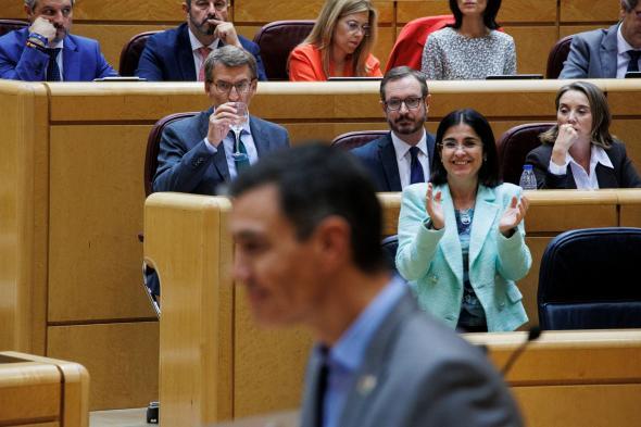 Sánchez ha comparecido ante el pleno del Senado para informar de las nuevas medidas de su Ejecutivo ante la crisis económica y social derivada de la guerra en Ucrania y ha tenido una primera intervención en la que no ha aludido al CGPJ y ha rebajado el tono contra Feijóo.