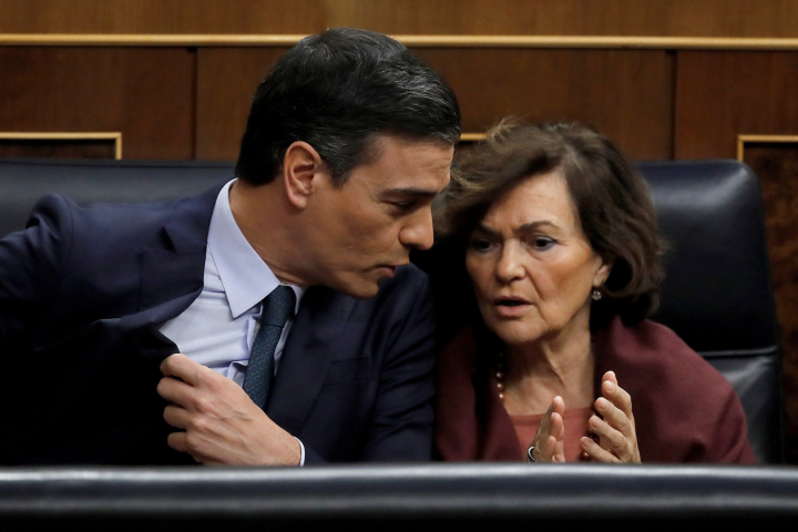 Un Ejecutivo de izquierdas, pero que tiene que tener en cuenta el contexto económico, según ha admitido Sánchez durante estas horas. Y sus pilares estaba sentados en el Congreso estos días: Carmen Calvo, Nadia Calviño y Pablo Iglesias -los tres ‘vices’-.