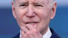 Un refugiado trata de calentarse con un fuego en la frontera ucraniano-polaca