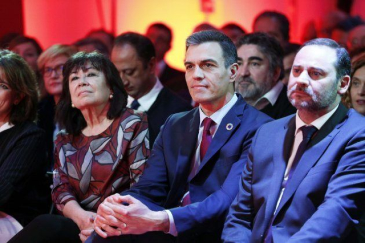 Y en el front row lo más granado de Ferraz y de la Moncloa: Cristina Narbona, Carmen Calvo, José Luis Ábalos, Josep Borrell, Isabel Celaá, María Luisa Carcedo, Margarita Robles, María Jesús Montero, Dolores Delgado, Reyes Maroto, Magdalena Valerio, Santos Cerdán...